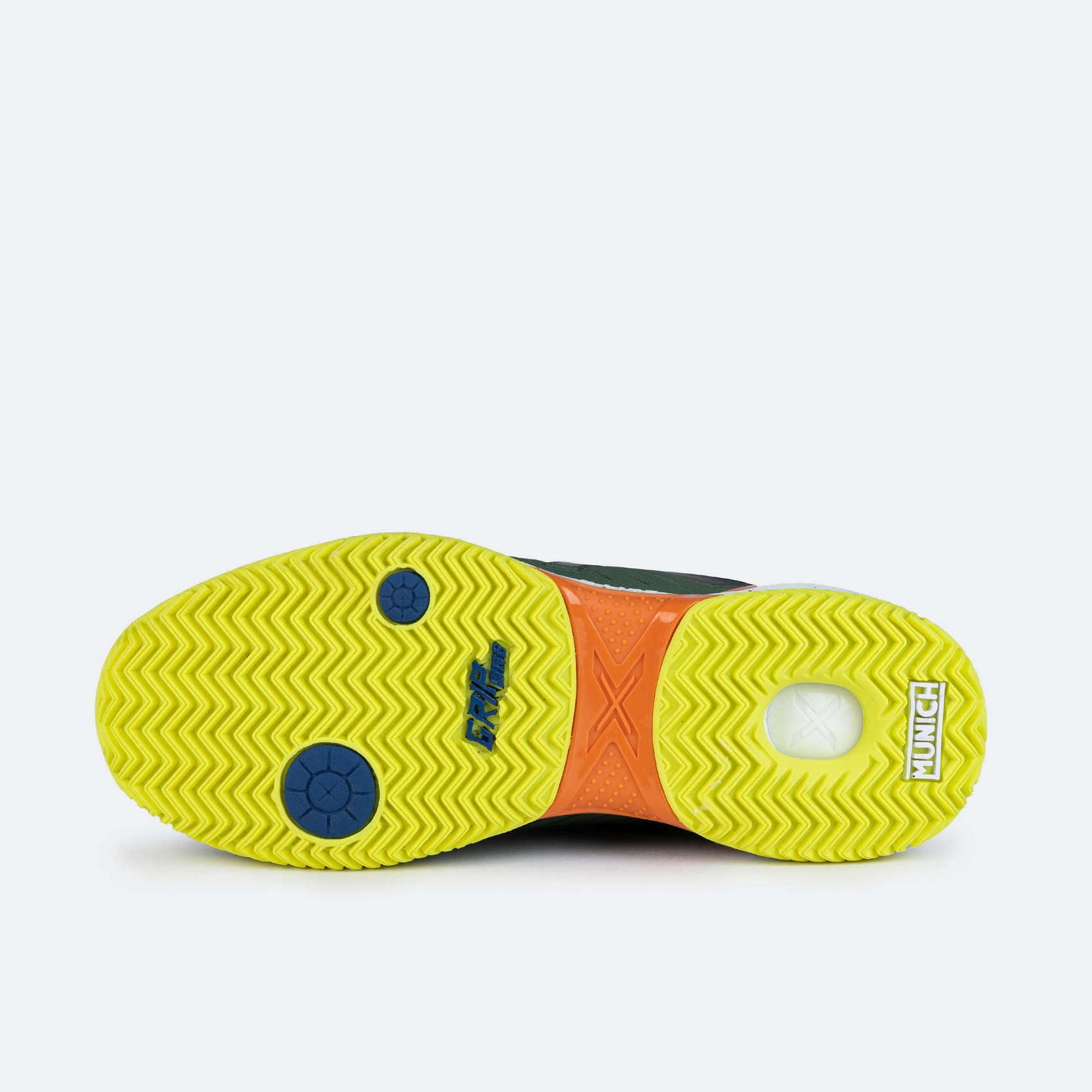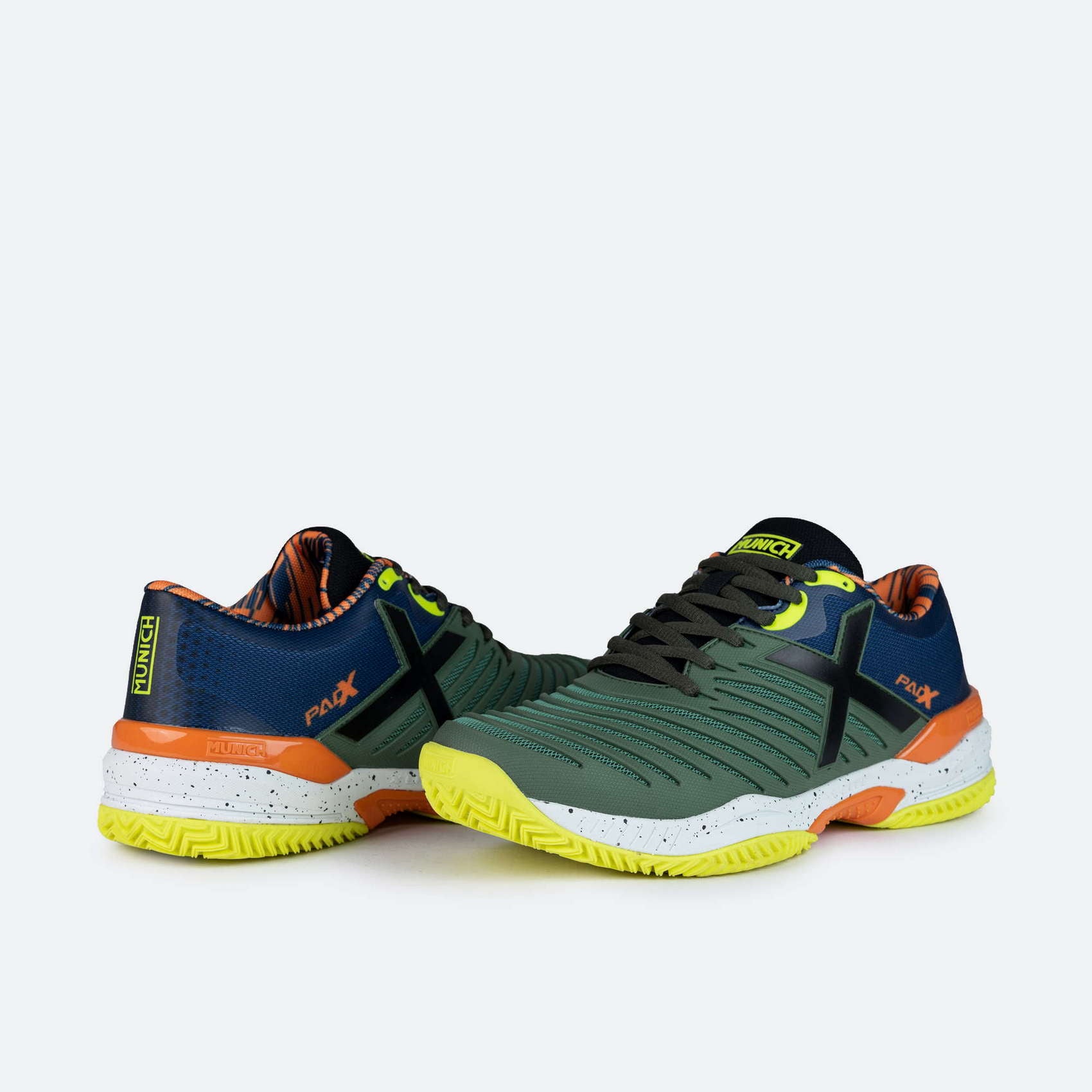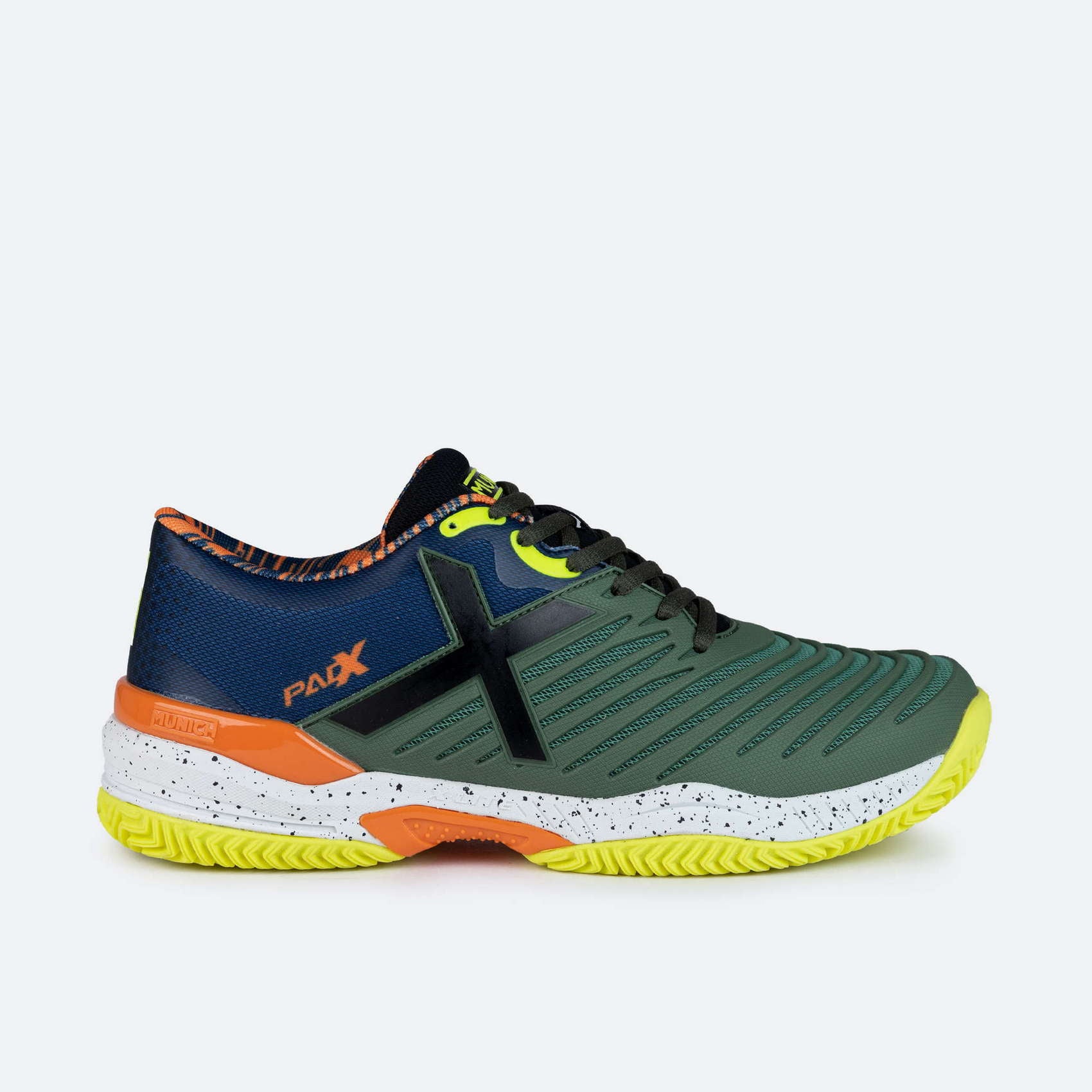 Glijden op de padelbanen. Het PAD X-model wordt gekenmerkt door zijn wreefweerstand dankzij het geïnjecteerde TPU-stuk dat de stofbasis structureert en weerstand biedt tegen schuren op de meest belaste plekken.